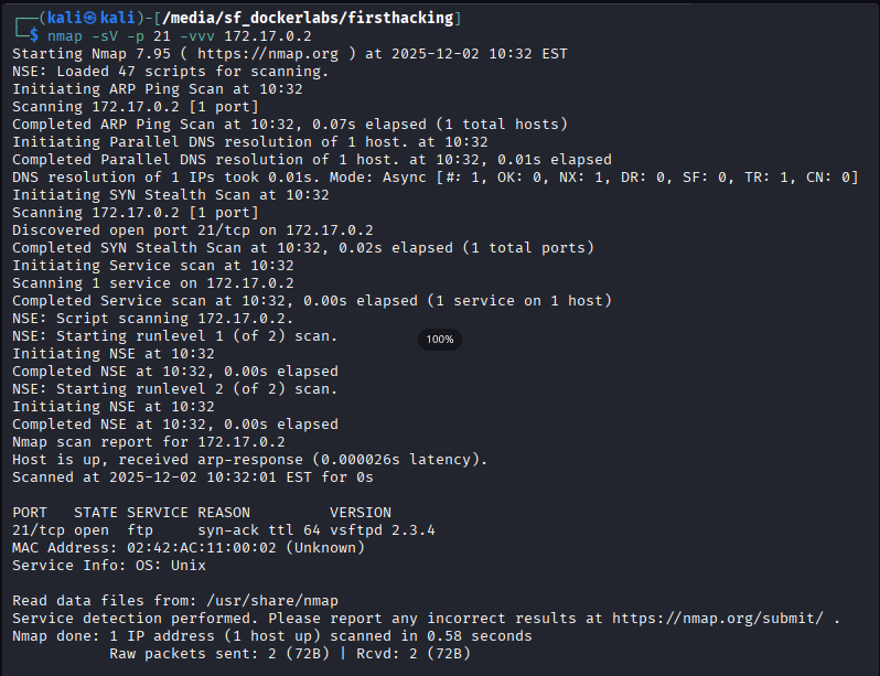 nmap -sV -p 21 -vvv 172.17.0.2